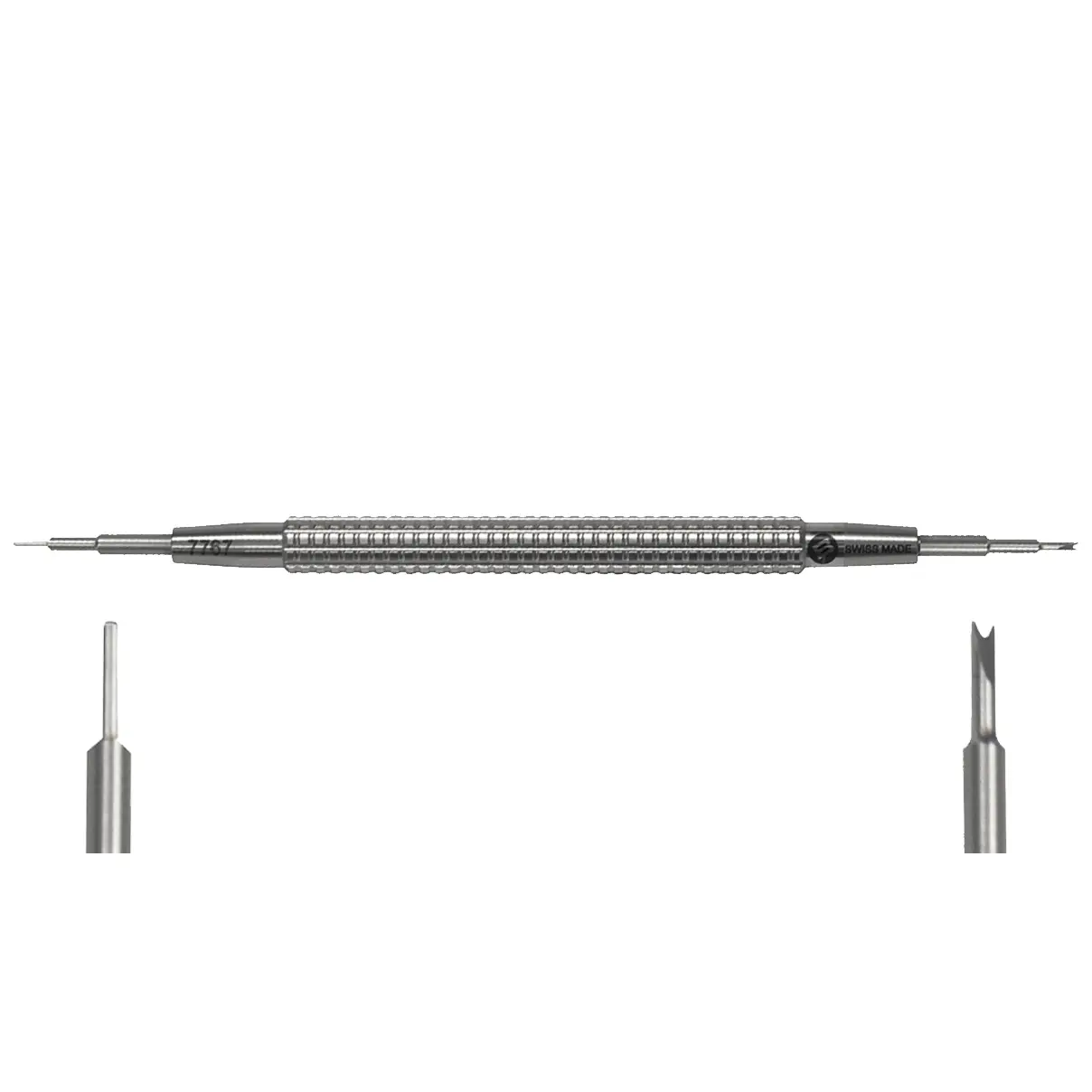 - Dual-Ended Design: One end features a fine fork tip for compressing spring bars; the other end has a pointed tip for pushing through drilled lugs or removing friction pins.