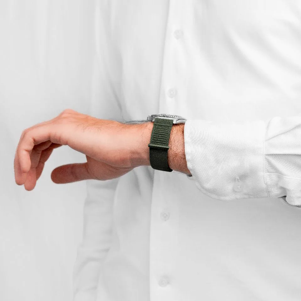 The HIRSCH Vocem is a versatile watch strap designed for active lifestyles, offering a combination of comfort, durability, and modern aesthetics. Crafted from soft, elastic, and breathable nylon, it ensures optimal wearing comfort throughout the day.