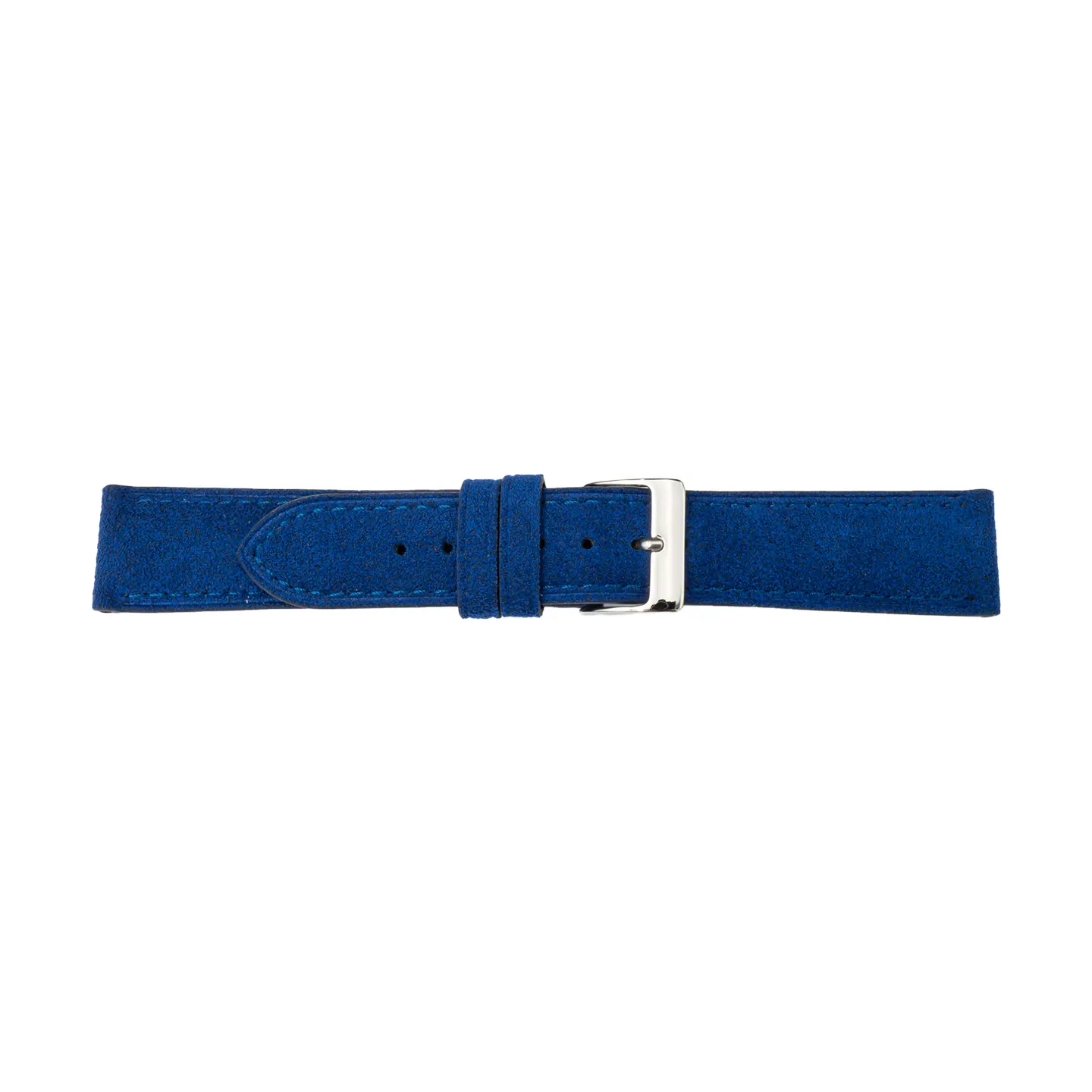 Blue Suede Strap with a Silver Buckle by Pebro. This replacement watch band is made out of Alcantara® and is available in 7 colors and 4 lug widths.