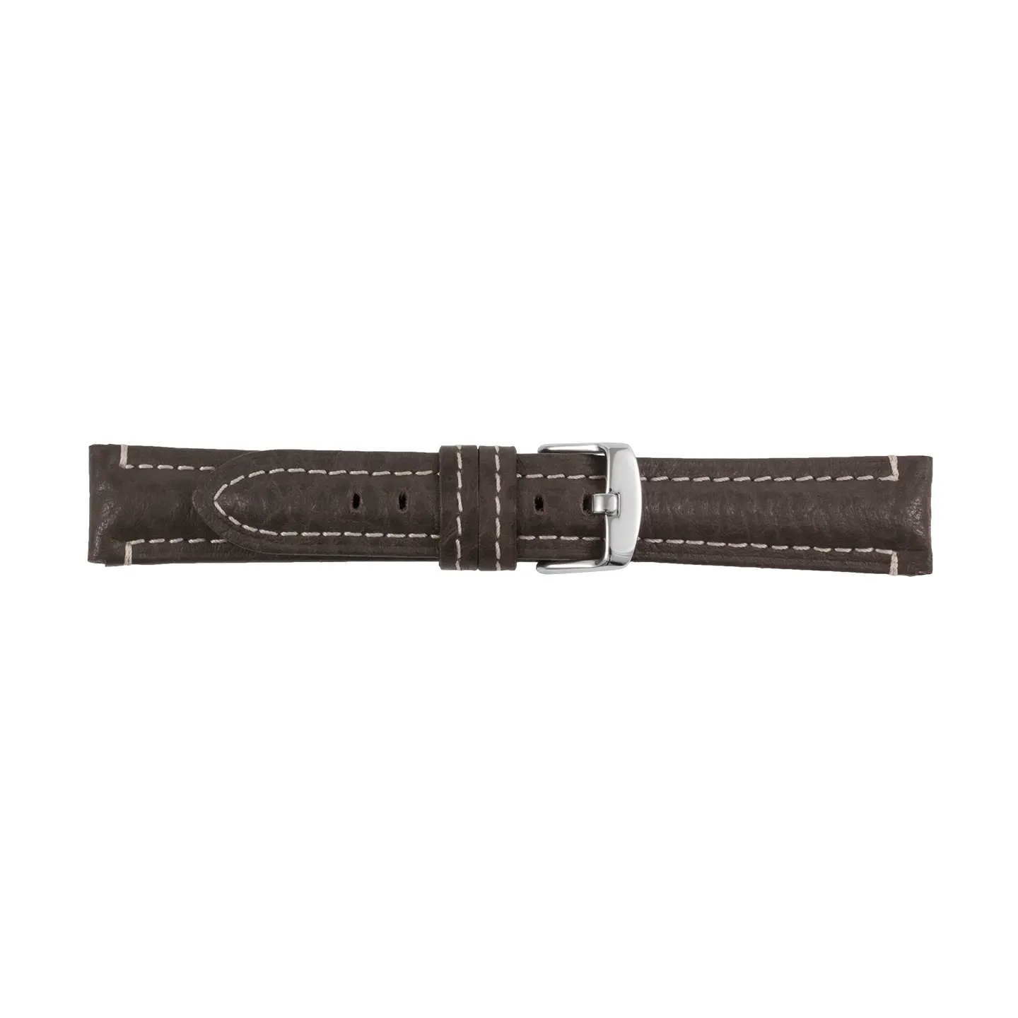 Brown Elephant Strap with a Silver Buckle by Pebro. This replacement watch band is made out of Calfskin and is available in 3 colors and 18 mm, 20 mm and 22 mm lug widths.