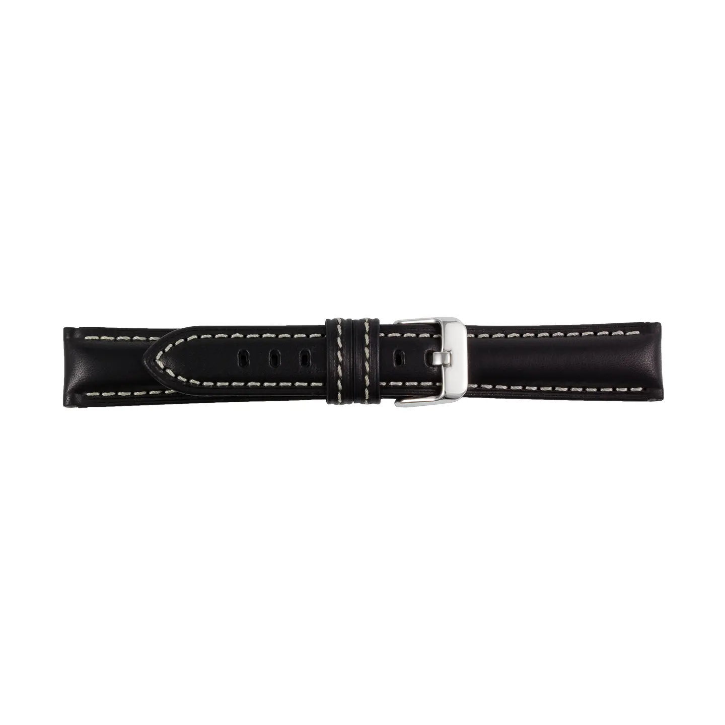 Black Band with a Silver Buckle from Pebro. This replacement watch band is manufactured from Calfskin and is available in 2 colors and 5 lug widths.