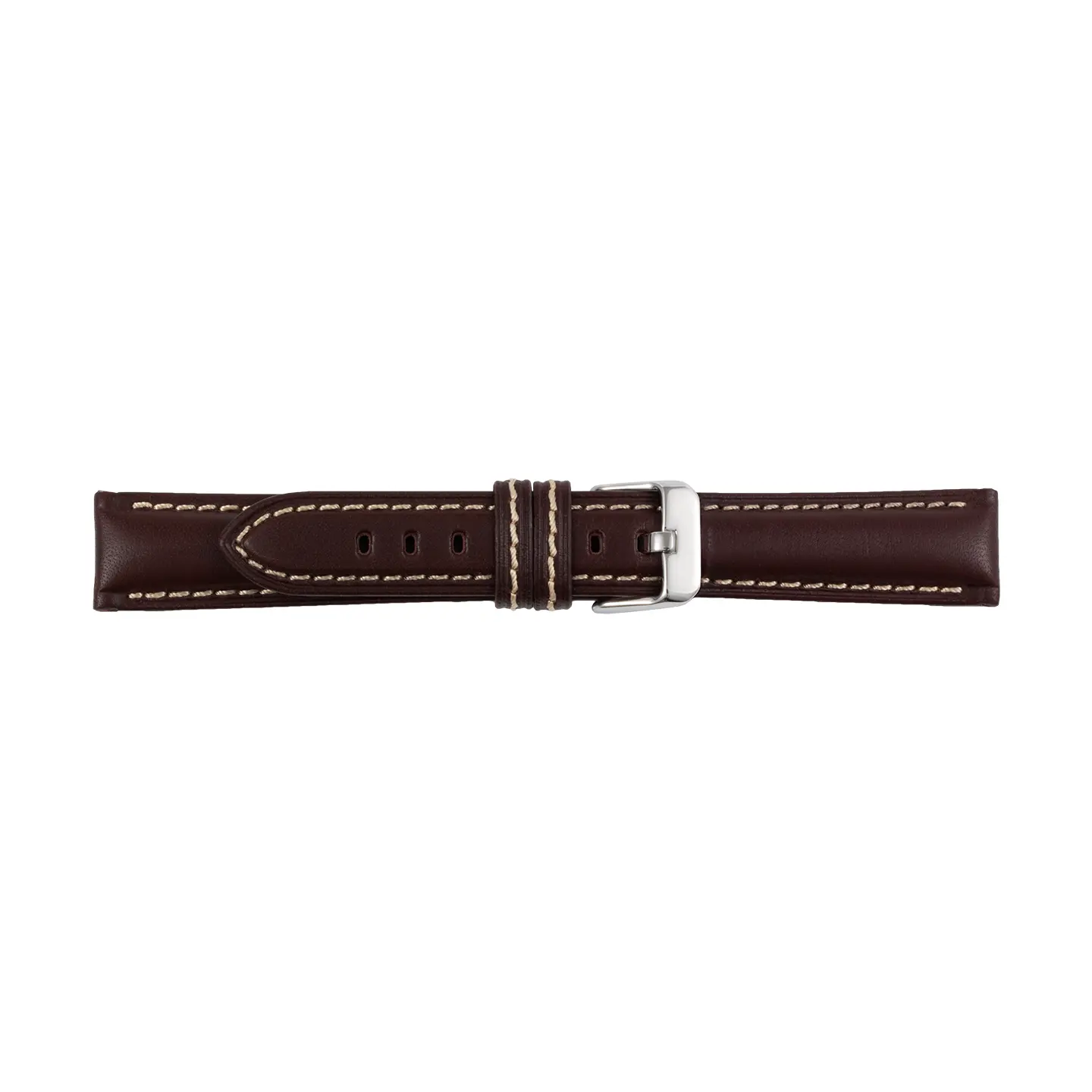 The Pebro Leather Watch Strap delivers visible quality with its contrast stitching and substantial build. Crafted from calf leather with tonal yet striking contrast seams, it features generous padding and refined taper toward the buckle, projecting both presence and sophistication.