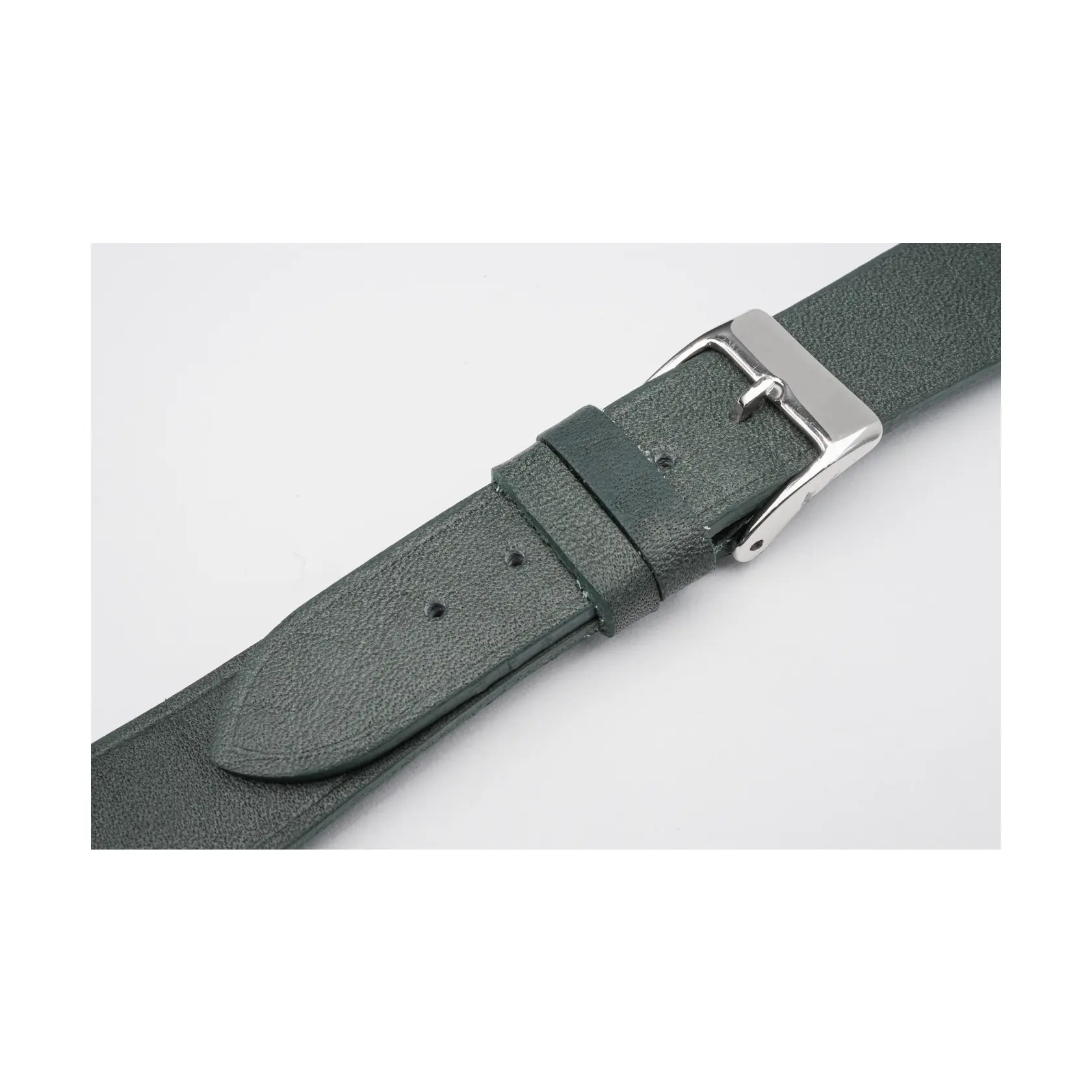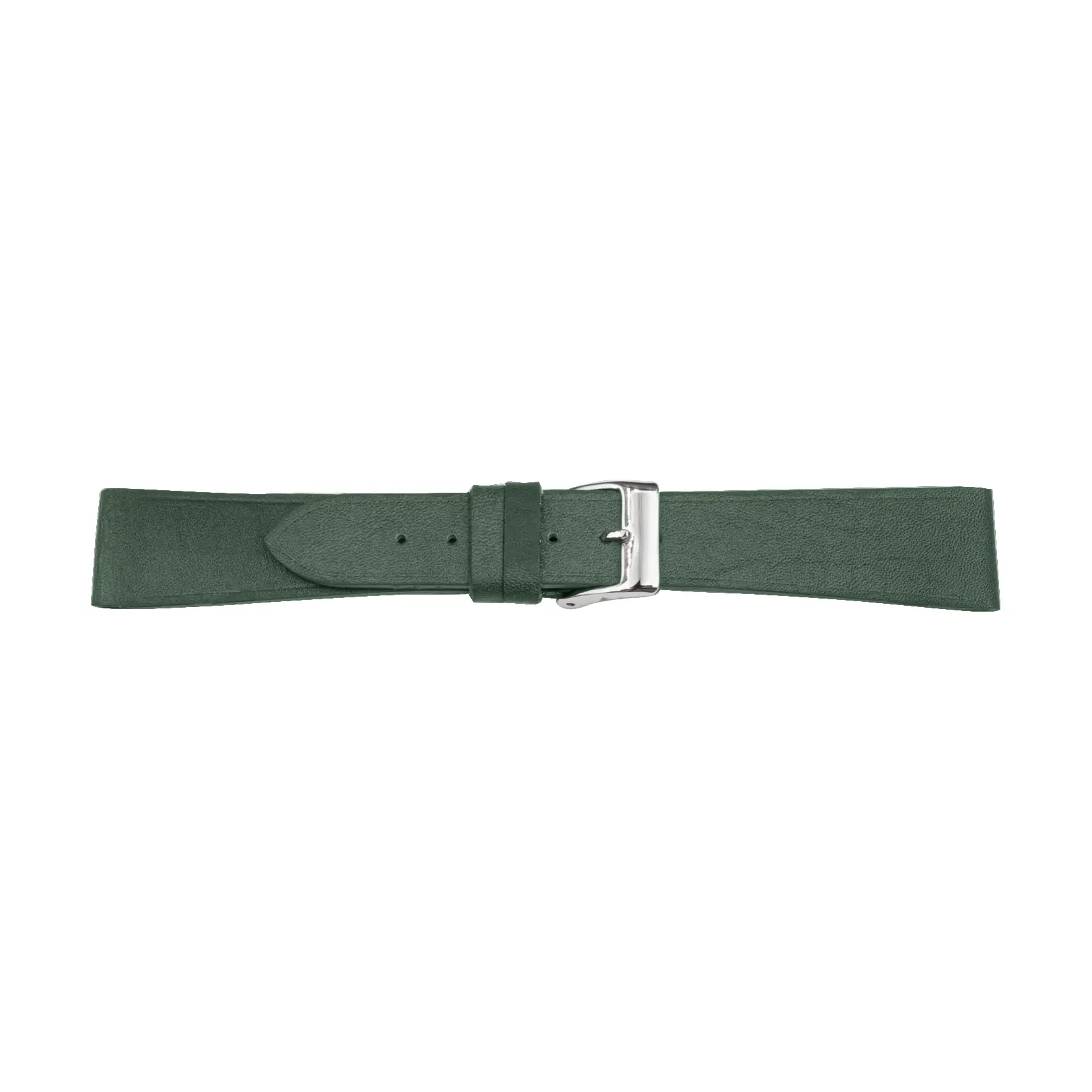 Green Classic Band with a Silver Buckle from Pebro. This replacement watch band is manufactured from Calfskin and is available in 6 colors and 18 mm, 20 mm and 22 mm lug widths.