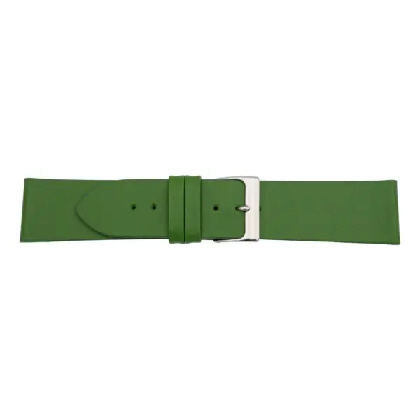 Green Classic Strap with a Silver Buckle by Pebro. This replacement watch band is made out of Calfskin and is available in 17 colors and 5 lug widths.