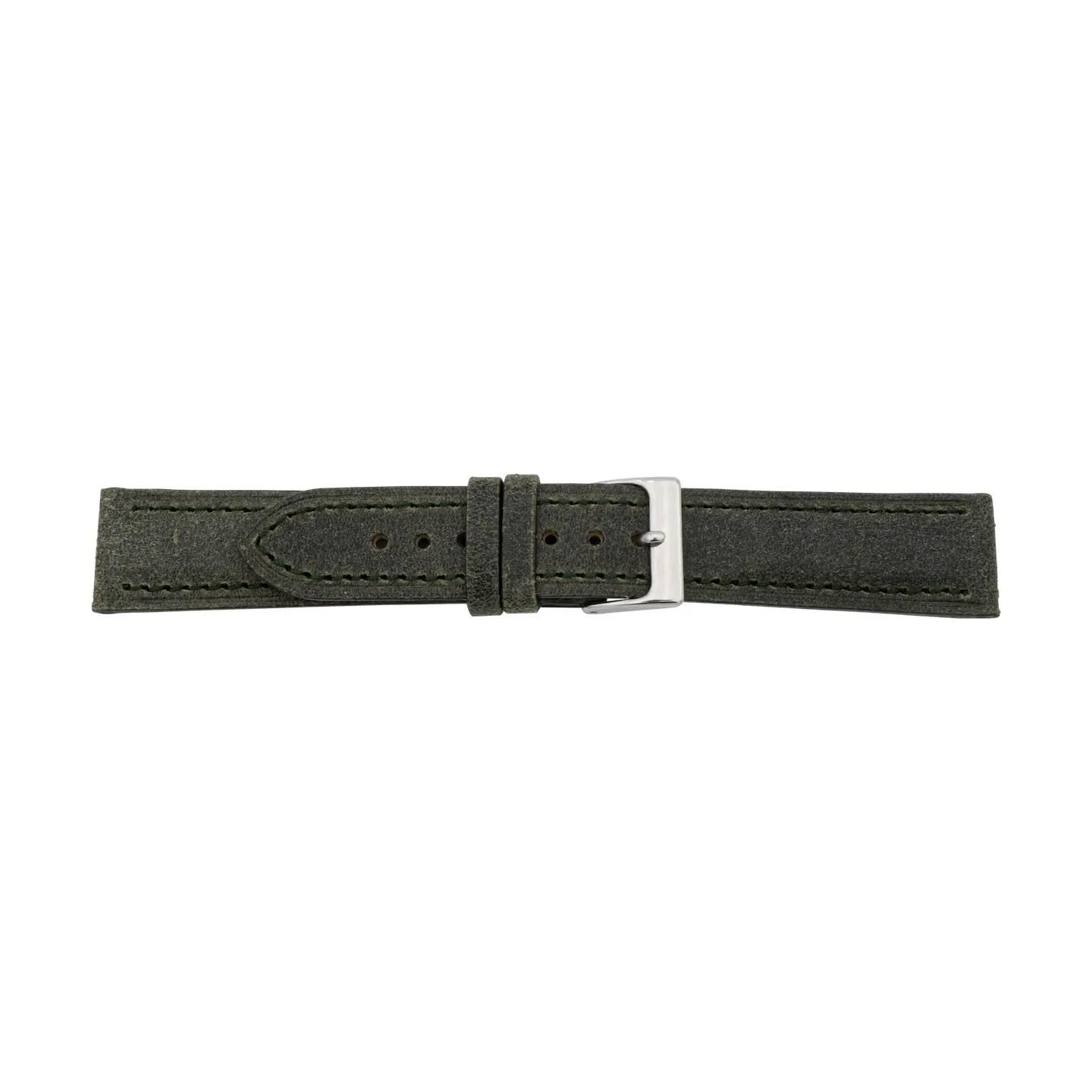 Green Vintage Strap with a Silver Buckle by Pebro. This replacement watch band is made out of Calfskin and is available in 4 colors and 4 lug widths.
