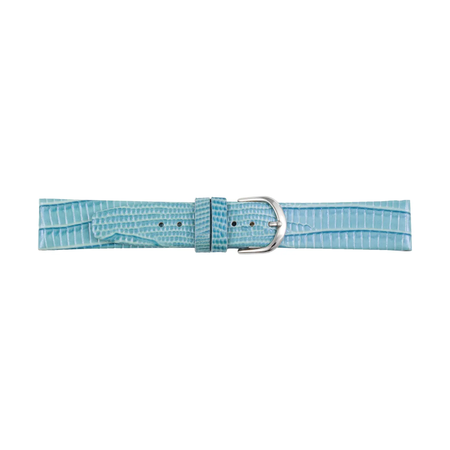 Blue Lizard Watch Strap with a Silver Buckle from Pebro. This replacement watch band is manufactured from Calfskin and is available in 5 colors and 16 mm and 20 mm lug widths.