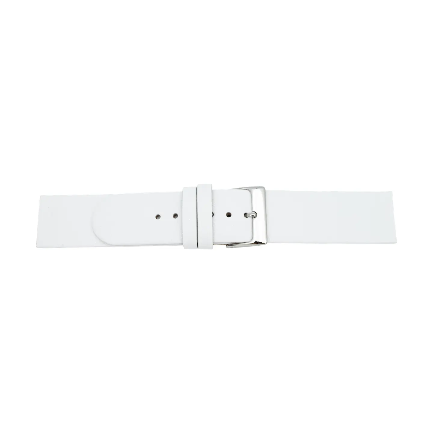 White Screw Lugs Strap with a Silver Buckle by Pebro. This replacement watch band is made out of Calfskin and is available in 8 colors and 7 lug widths.