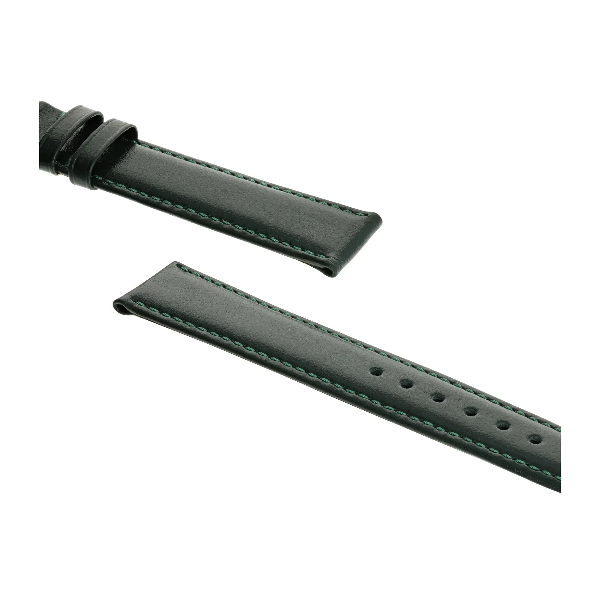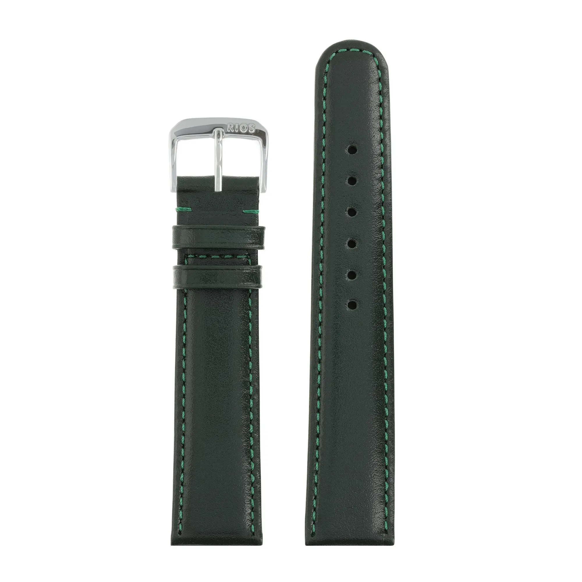 Green Saddle Leather Strap with a Gold Polished or Silver Polished Buckle by RIOS1931. This replacement watch band is made out of Cowhide Leather and is available in 8 colors and 7 lug widths.