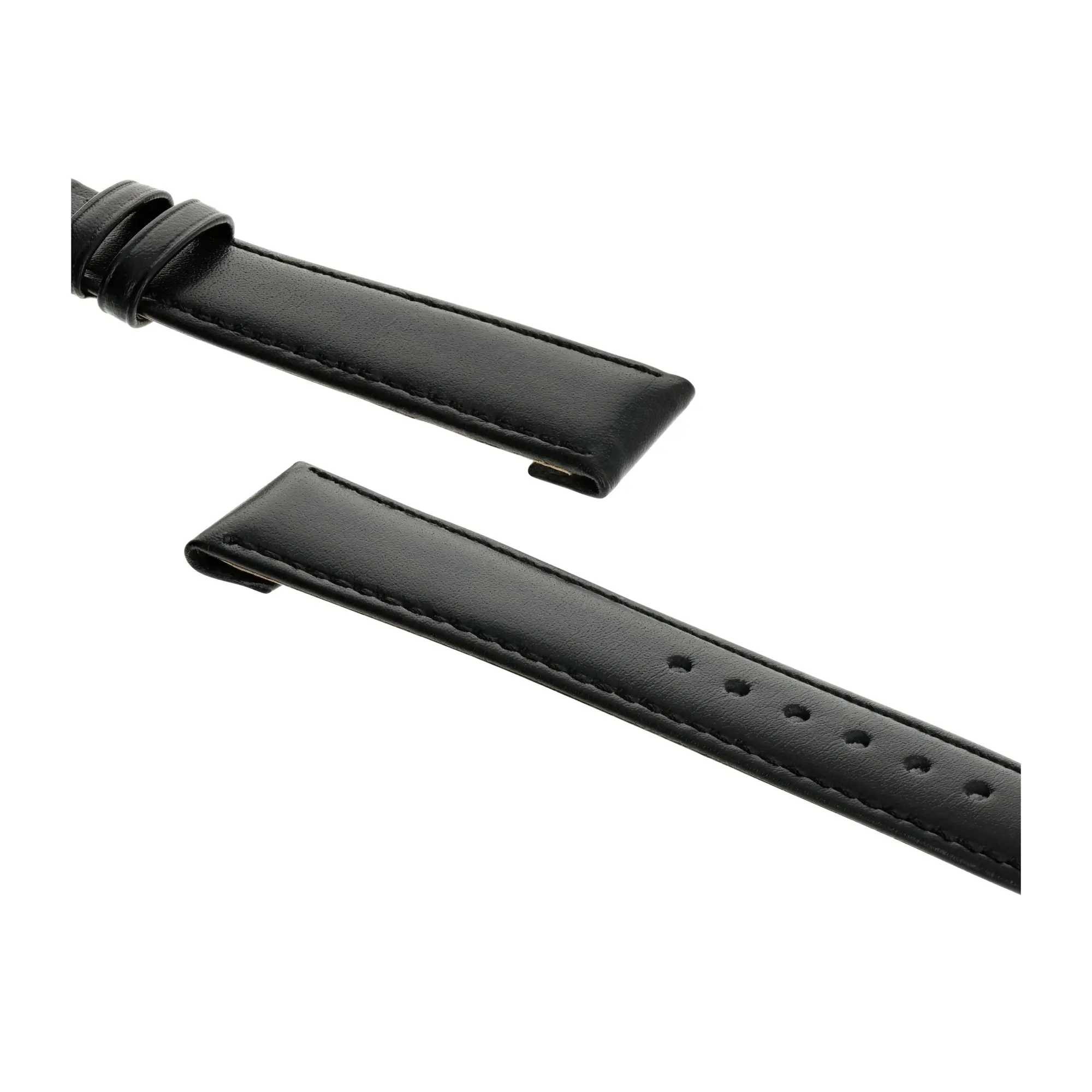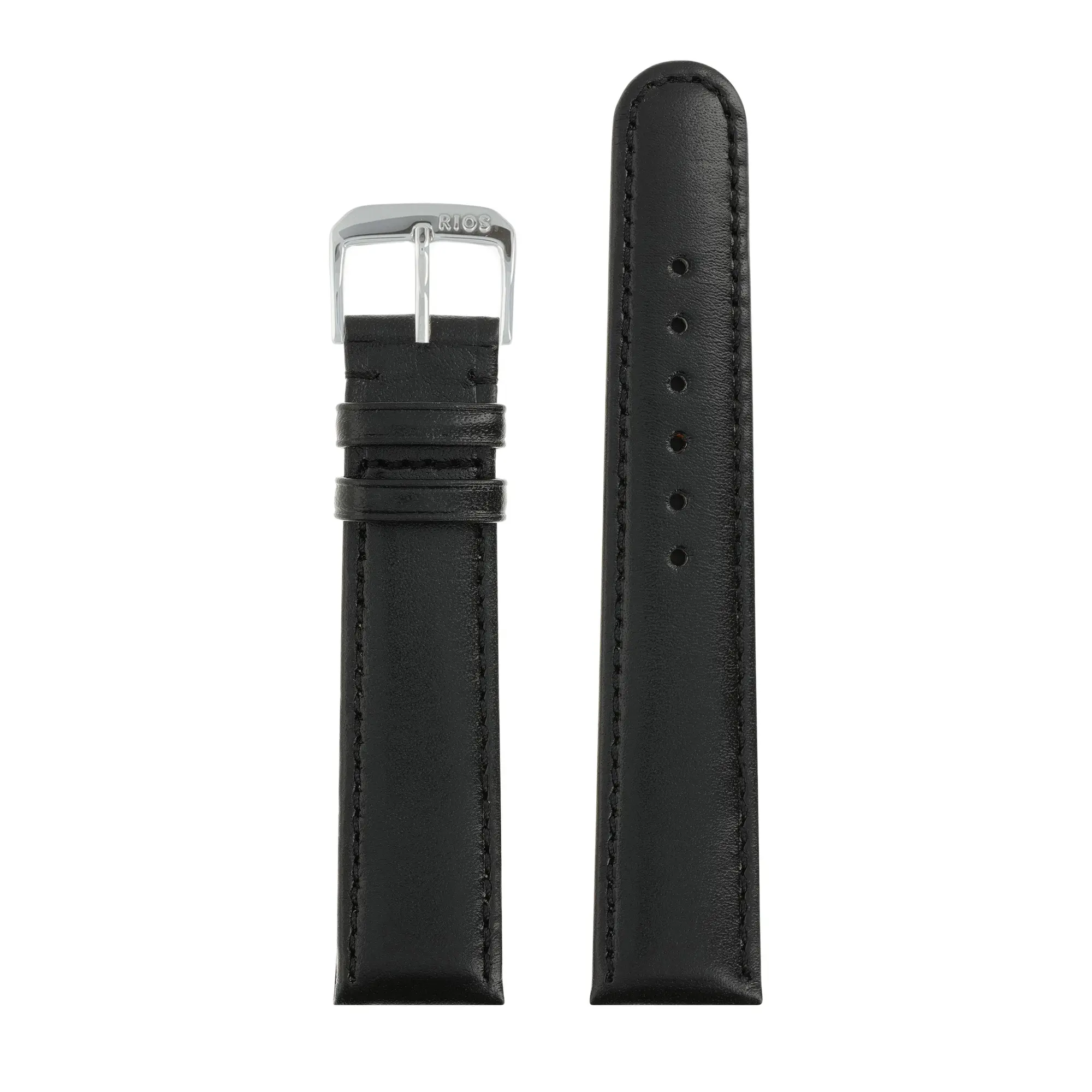 Black Saddle Leather Band with a Gold Polished or Silver Polished Buckle from RIOS1931. This replacement watch band is manufactured from Cowhide Leather and is available in 8 colors and 6 lug widths.